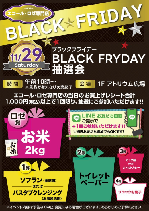 エコール・ロゼ専門店の当日のお買上レシート合計1,000円(税込)以上で1回限り、抽選にご参加いただけます!!