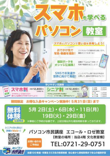 インストラクターが丁寧にサポートしますので、パソコンが苦手な方でも安心です。