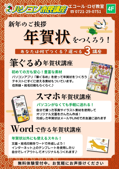 選べる3つの年賀状講座をご用意♪