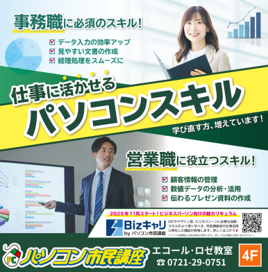 詳しくは、パソコン市民講座エコール・ロゼ教室まで